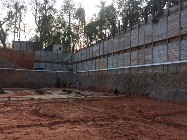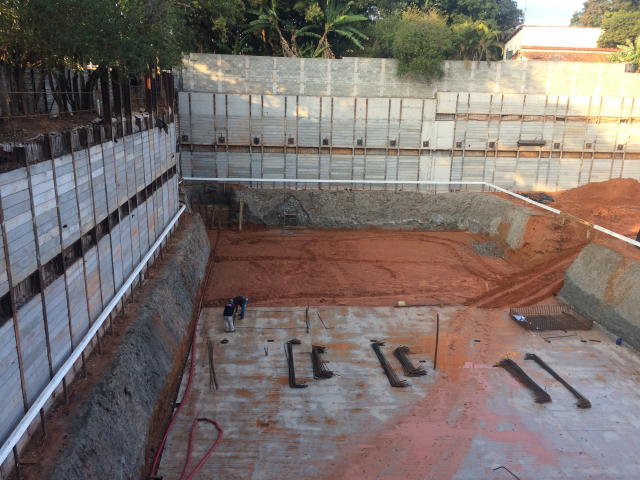 Foto em 29/01/2018 - Ancoragens da cortina em andamento.