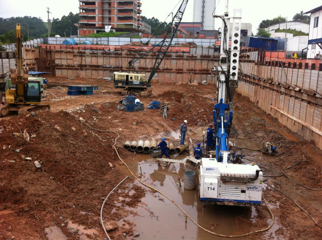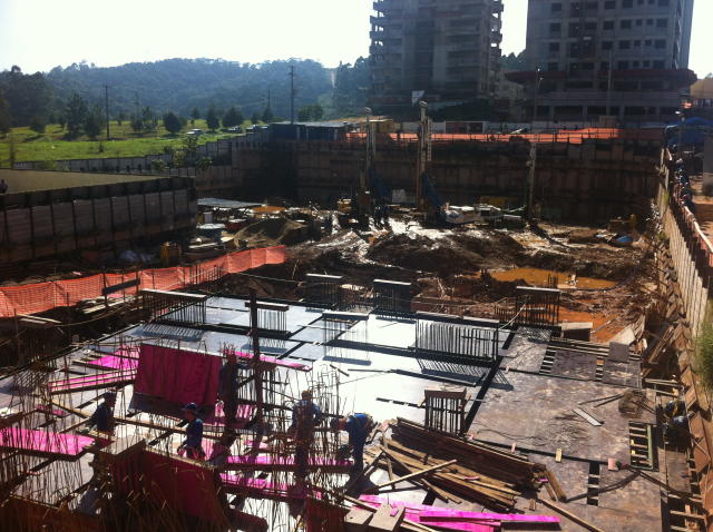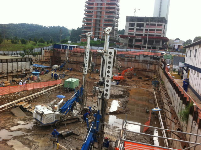 | - Foto em 31/10/13 - Escavação e cortinas executadas até o 2o.SS, e incio das estacas escavadas. | |