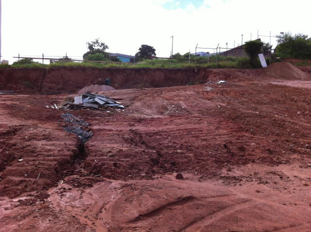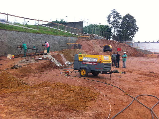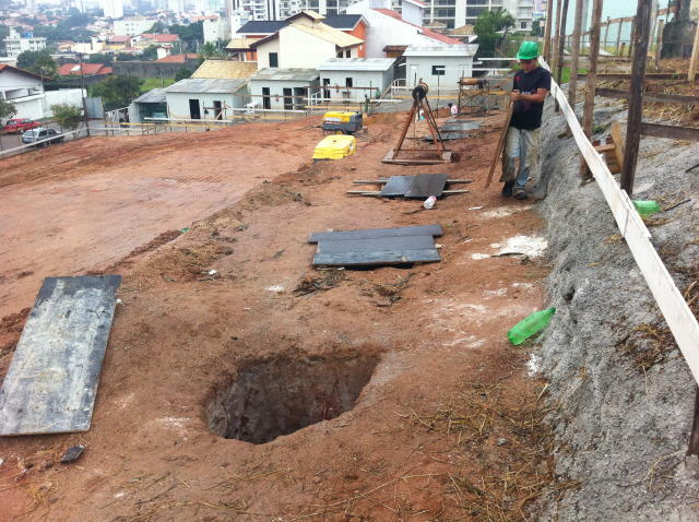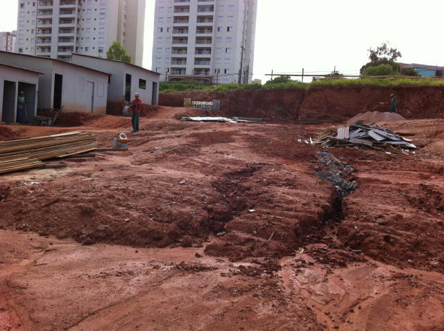 | - Foto em 29/04/2011 - Escavação geral e início dos tubulões de divisa para implantação dos perfis metálicos. | |