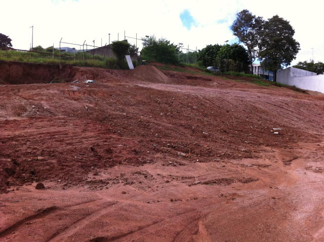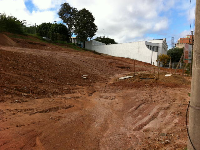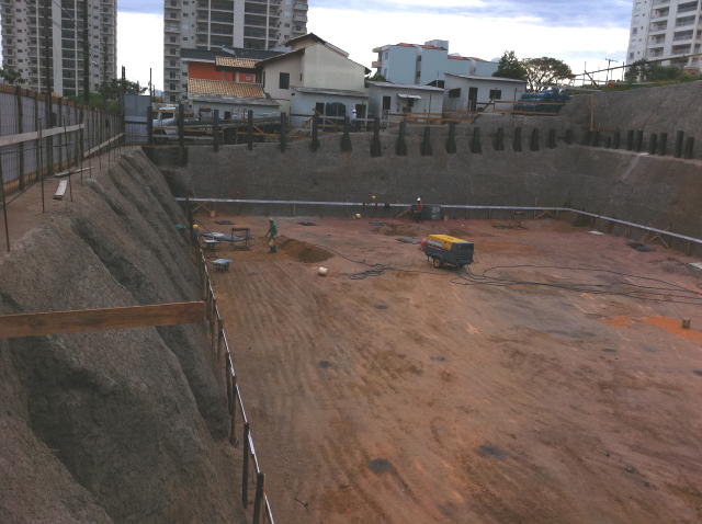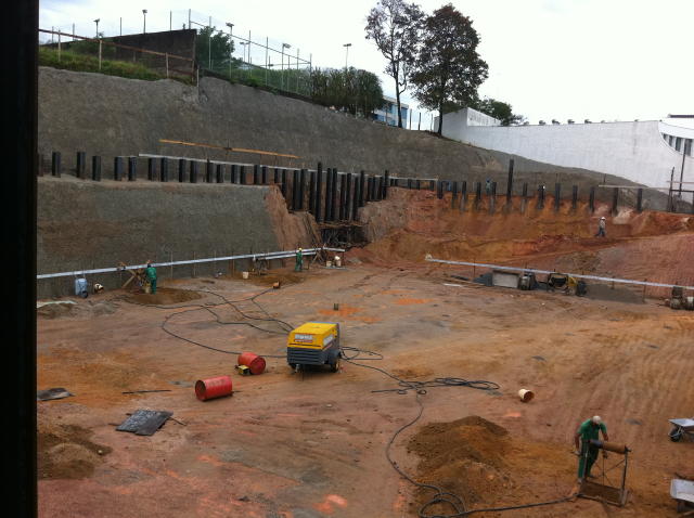 | - Foto em 22/07/2011 - Escavação geral e perfis implantados para as contenções. | |