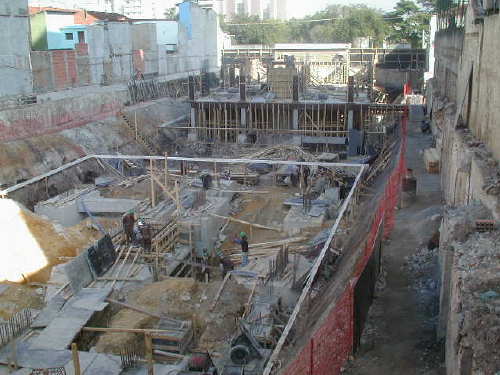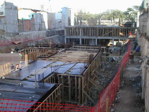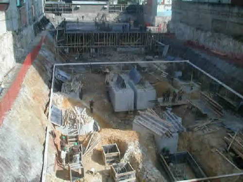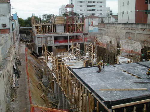 | Foto em 13/06/01 - Concluindo blocos do primeiro prédio, e subindo estrutura do segundo. | ||