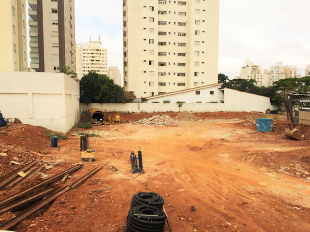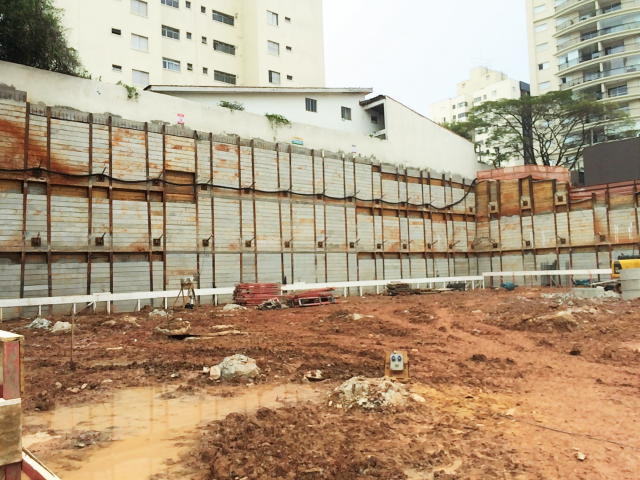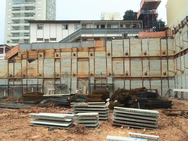 | - Foto em 16/06/16 - Cortinas do 2o.SS sendo concluídas, escavação geral para execução da fundação. | |