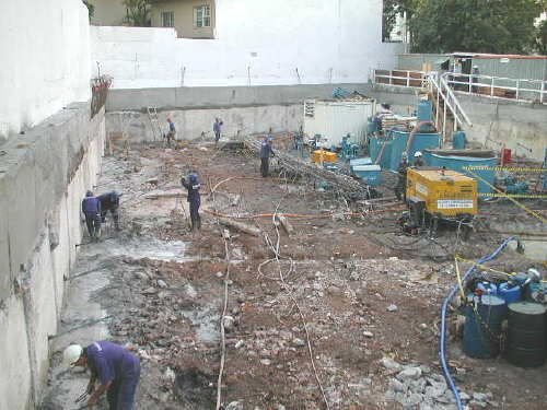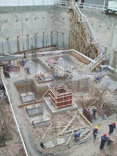 | - Foto em 17/04/03 - Andamento dos serviços de parede diafragma. | ||