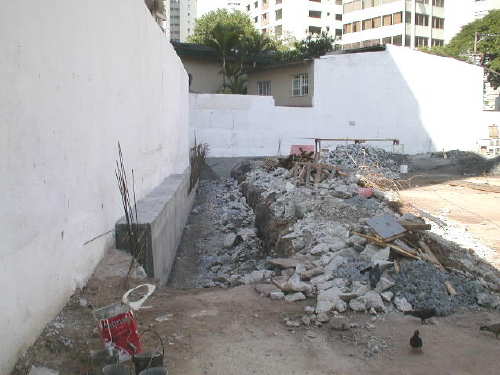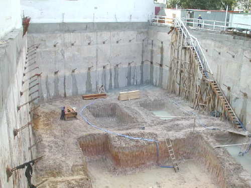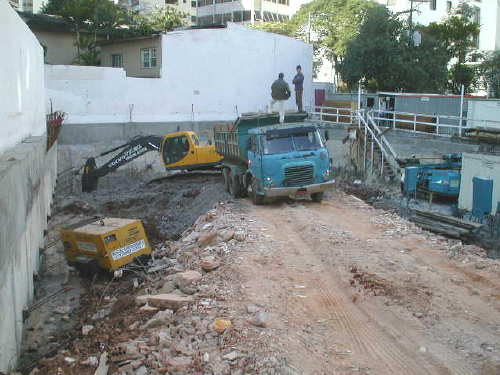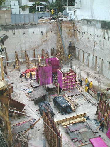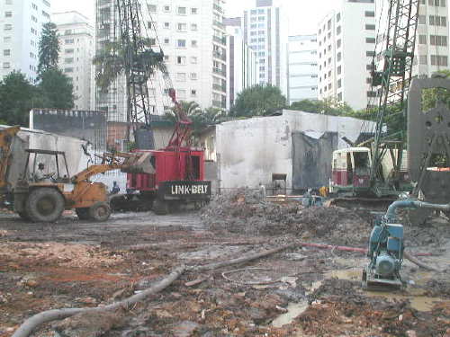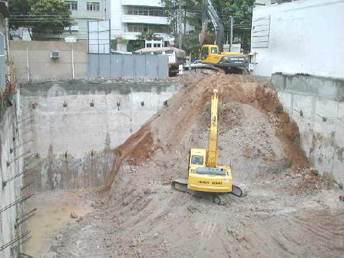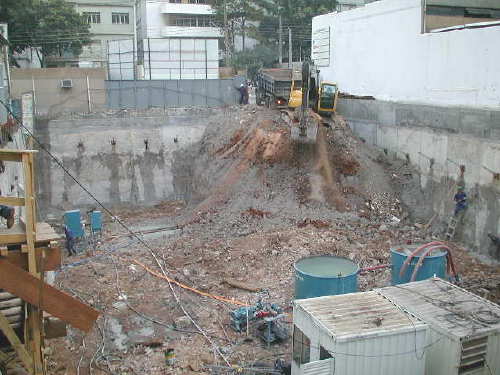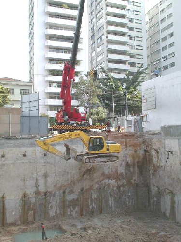| - Foto em 12/08/03 - Escavação geral até o 3o.SS, e das sapatas de fundação concluída. | ||