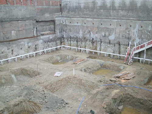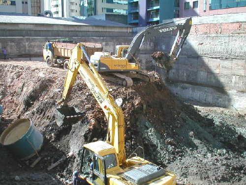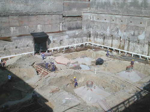 | - Foto em 19/05/03 - Escavação até o 3o.Sub-Solo, com abertura das sapatas de fundação. | |