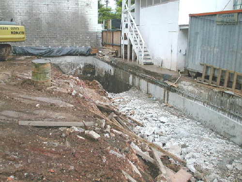 | - Foto em 29/01/03 - Iniciando a execução da parede diafragma. | |