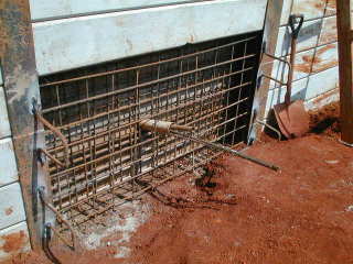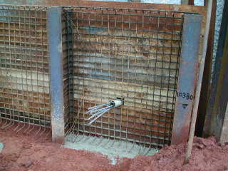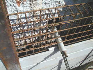 | - Foto em 03/02/05 - Detalhe da armação do nicho de cortina atirantado. | |
