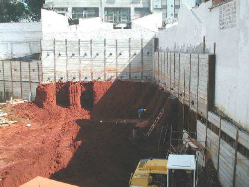 | - Foto em 17/06/05 - Fundação em tubulão concluída, e escavando blocos. | |