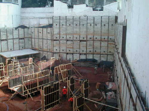 | - Foto em 01/04/05 - Cortinas do 2o.SS concretadas. | |
