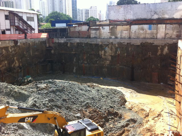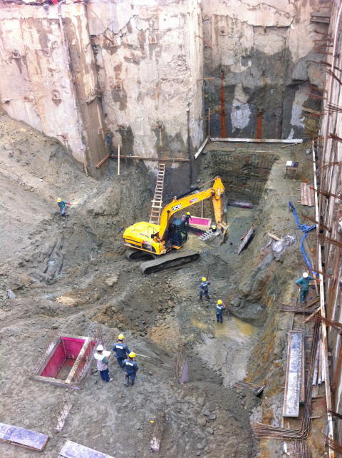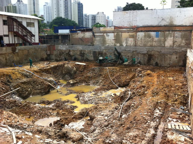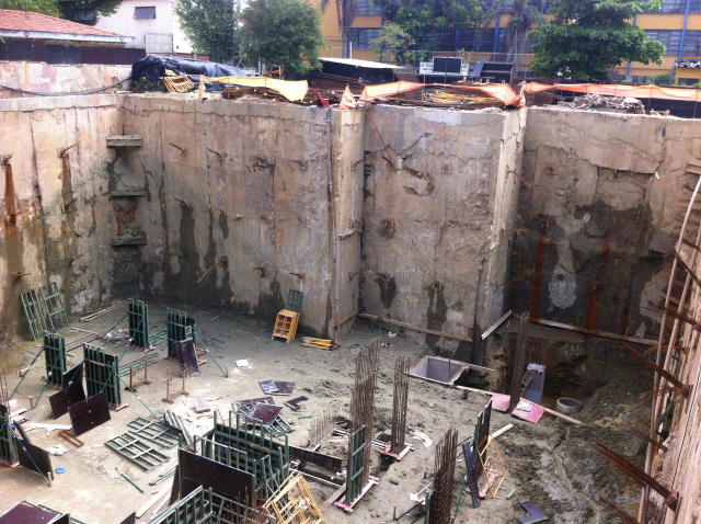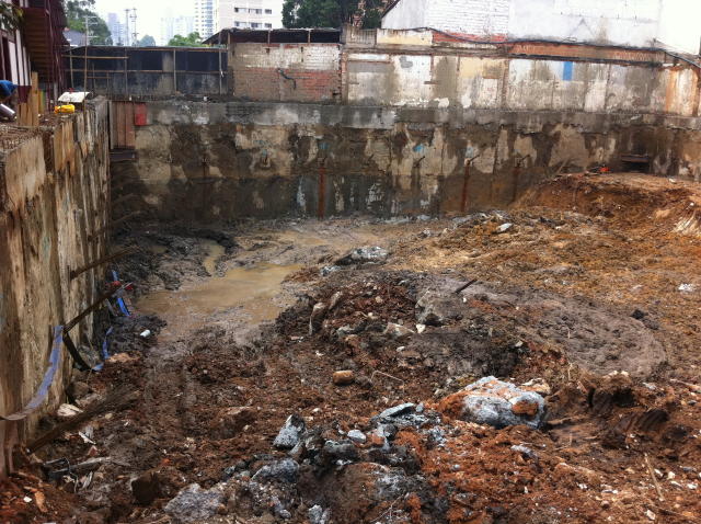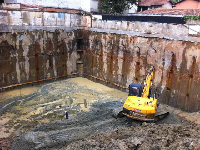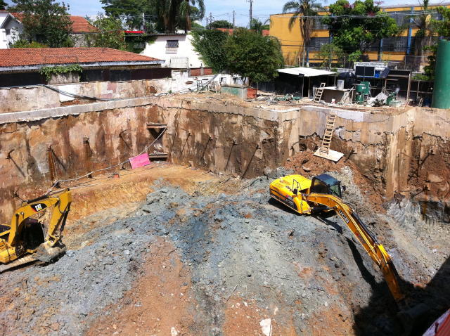| - Foto em 03/04/2012 - Escavação de 4 sub-solos, sem taludes remanscentes. | |