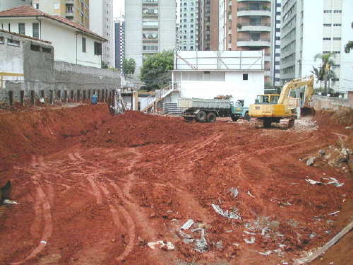 | - Foto em 29/10/03 - Retomando serviços com escavação da obra. | ||