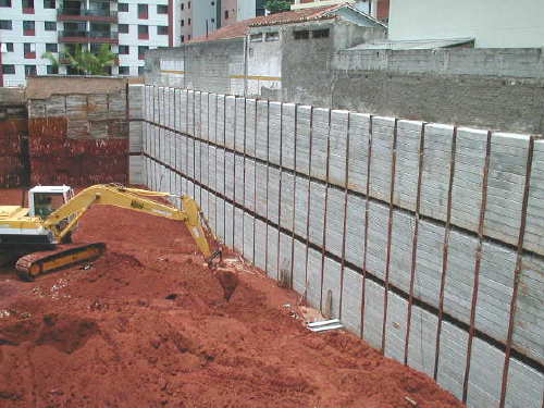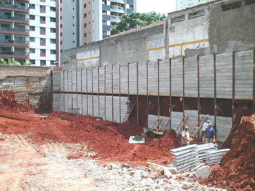 | - Foto em 13/06/03 - Início da cravação dos perfis metálicos. | ||