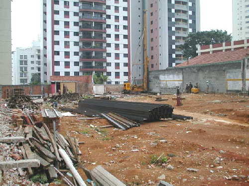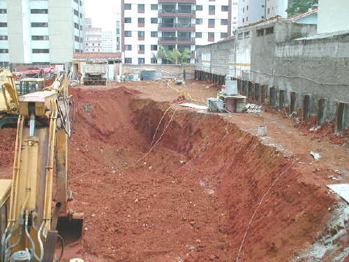 | - Foto em 07/01/04 - Escavadas as sapatas e iniciando tubulões. | ||