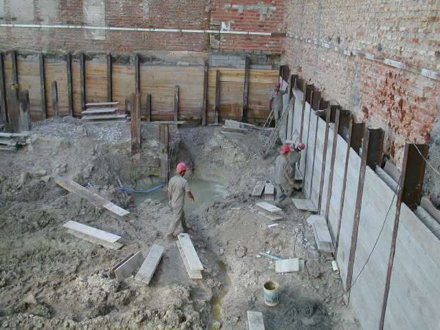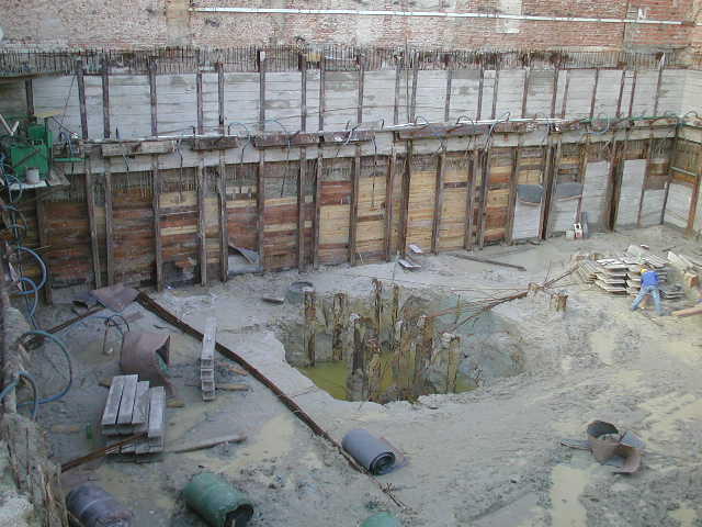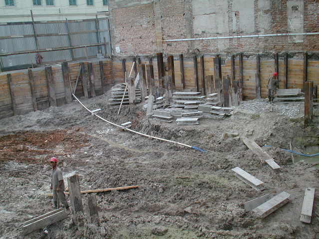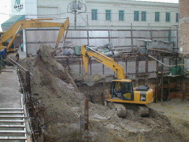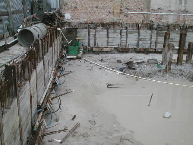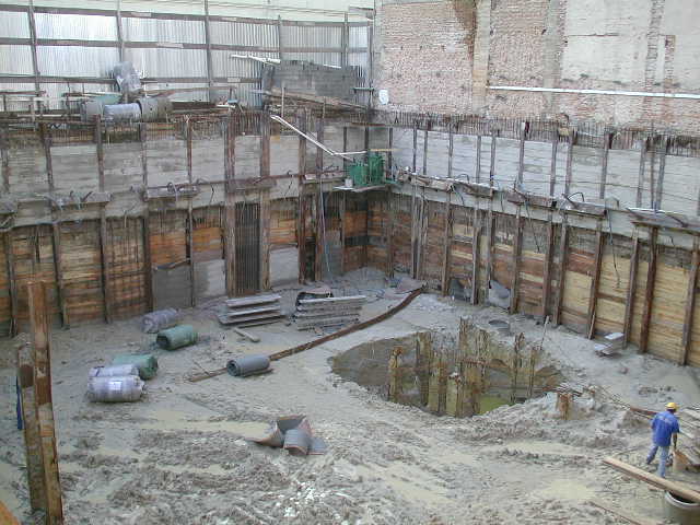 | - Foto em 09/04/07 - Escavação concluída. Poço de elevador também escavado. | |
