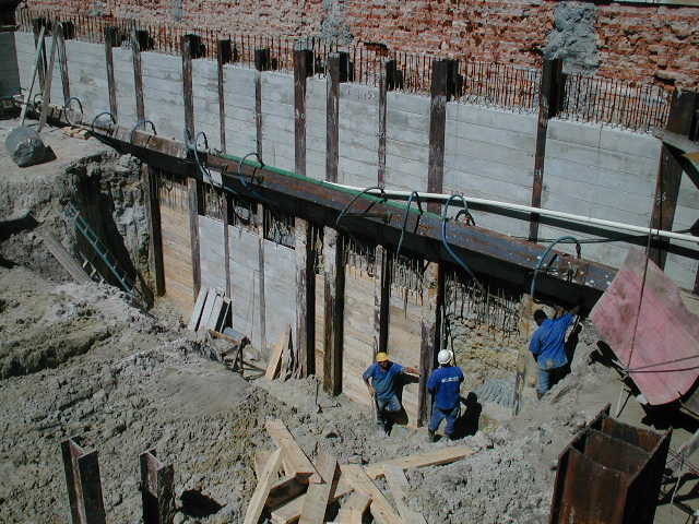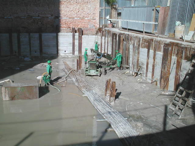 | - Foto em 13/02/07 - Cortinas do 1o.SS concretadas, e executando ancoragens. | |