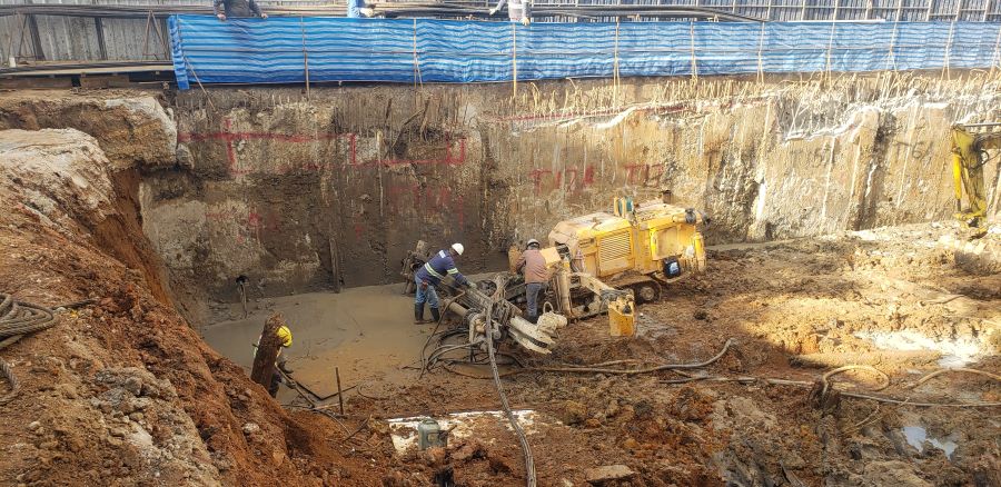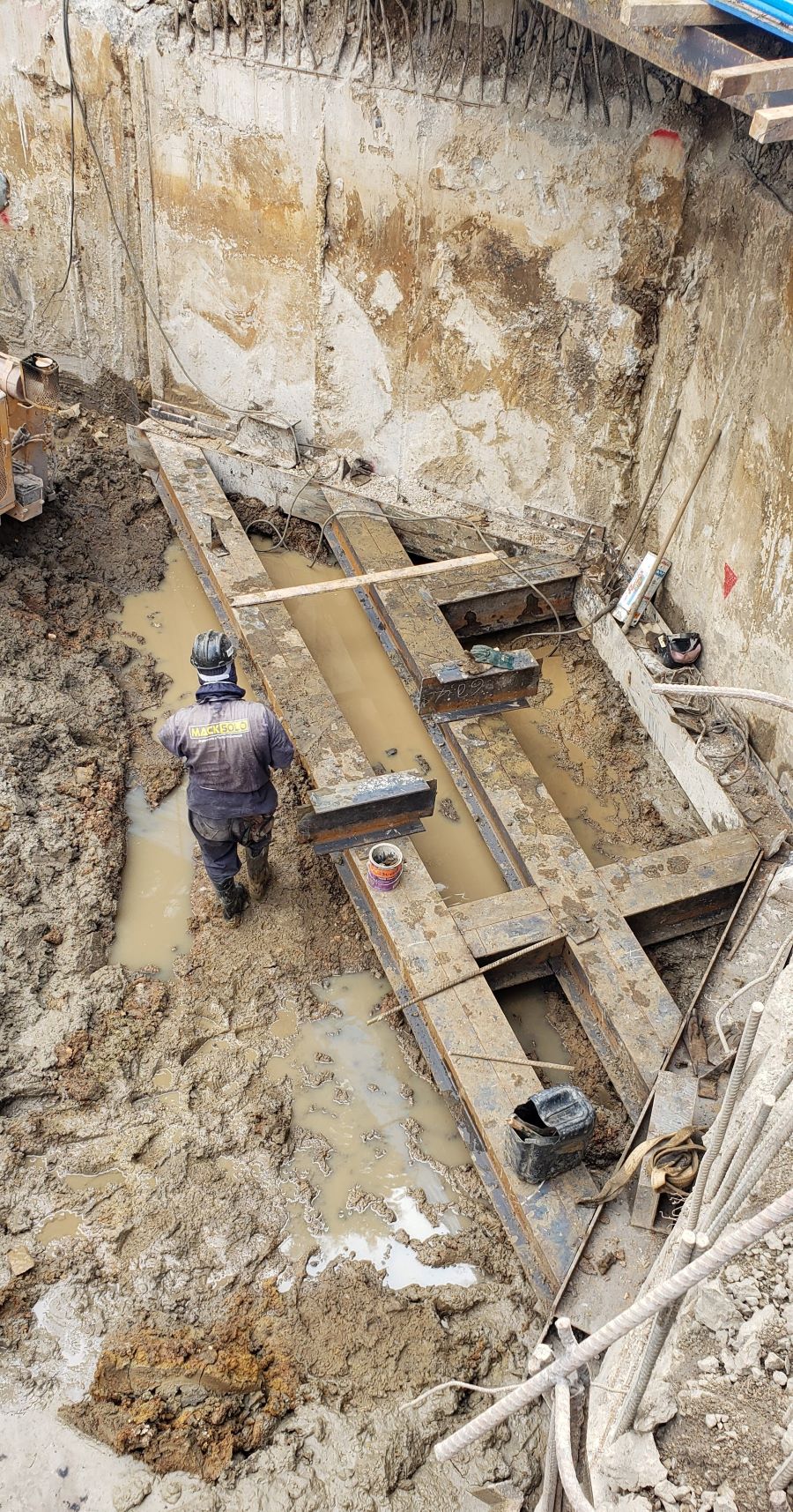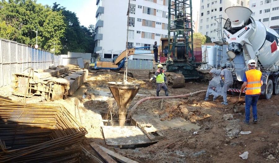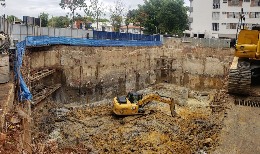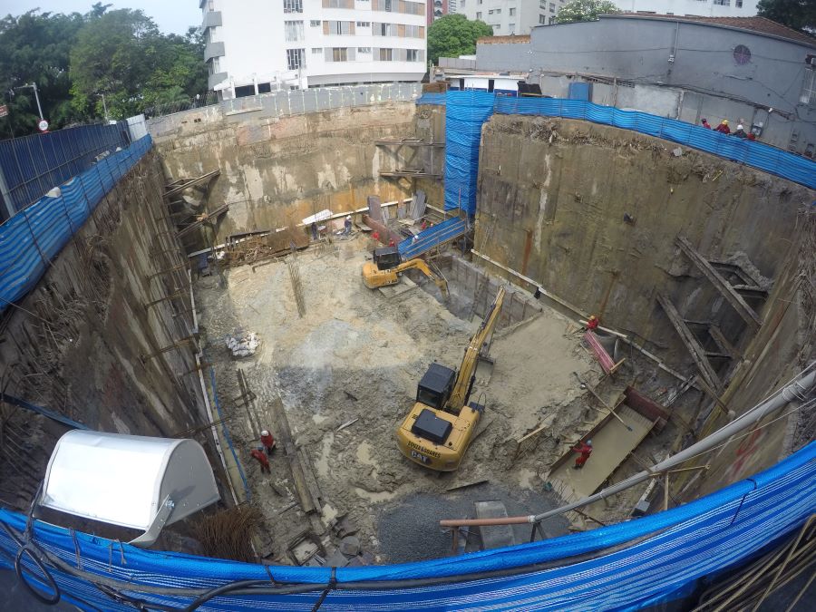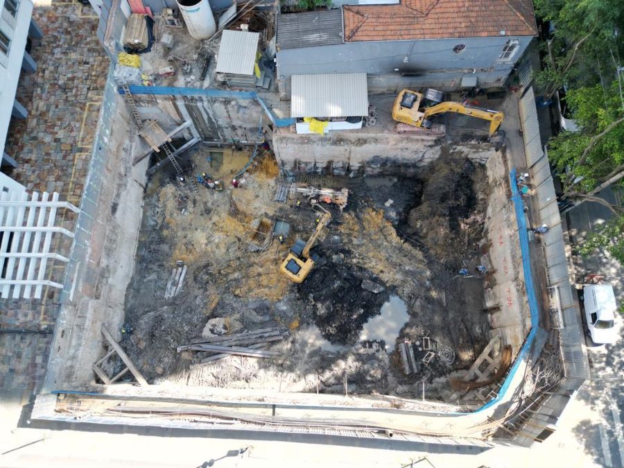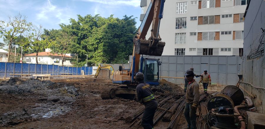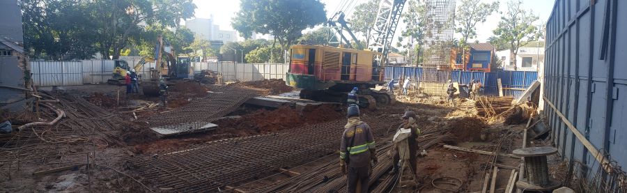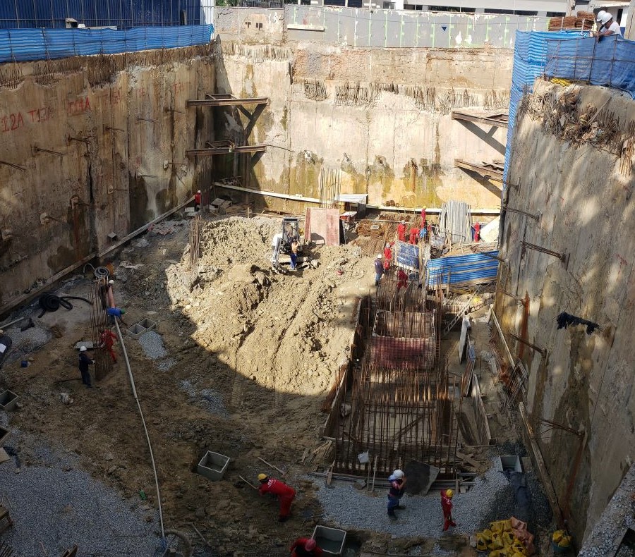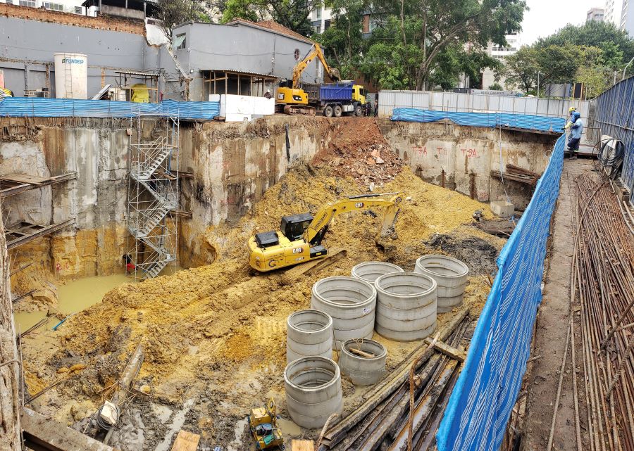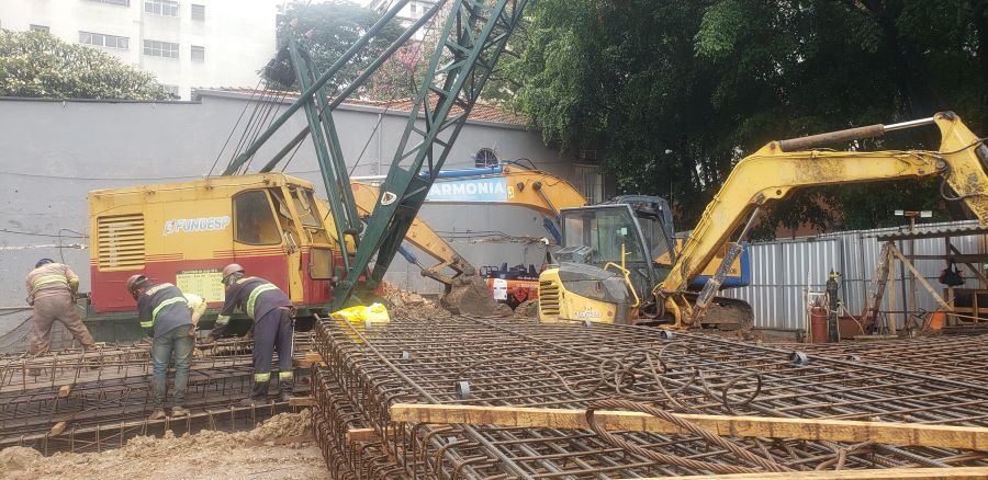 | - Foto em 07/06/2023 - Escavação das estacas barrete de fundação - arrasadas no 3o.SS, e argamassadas na sequencia. | |