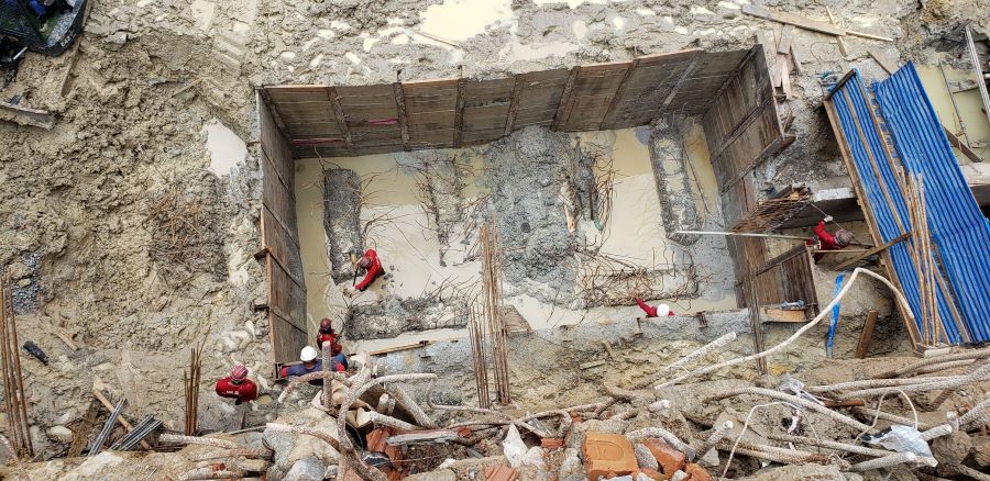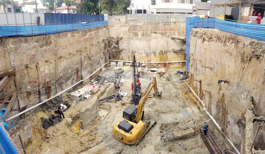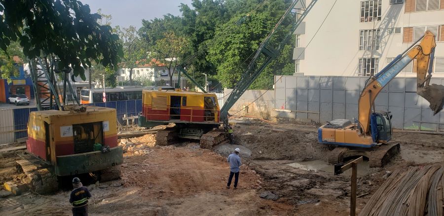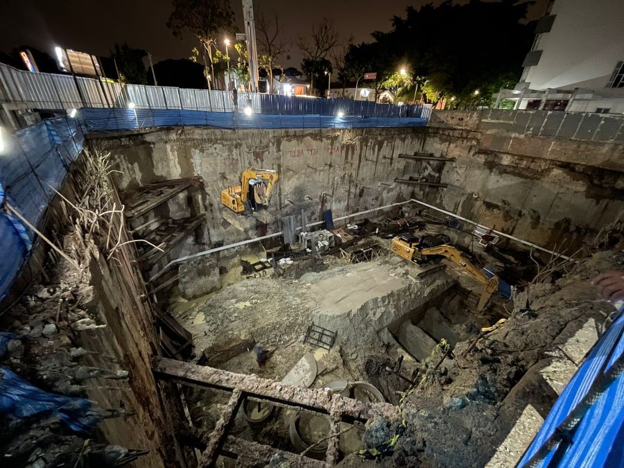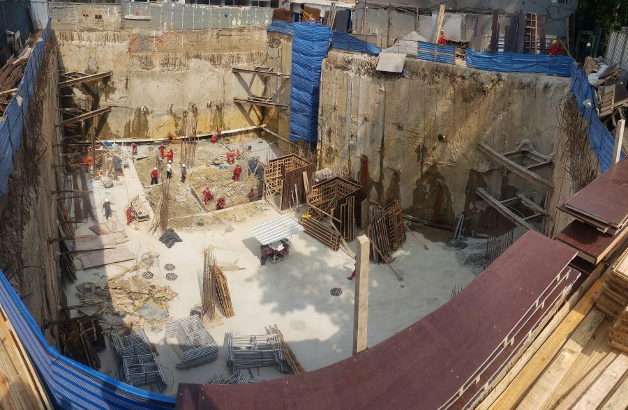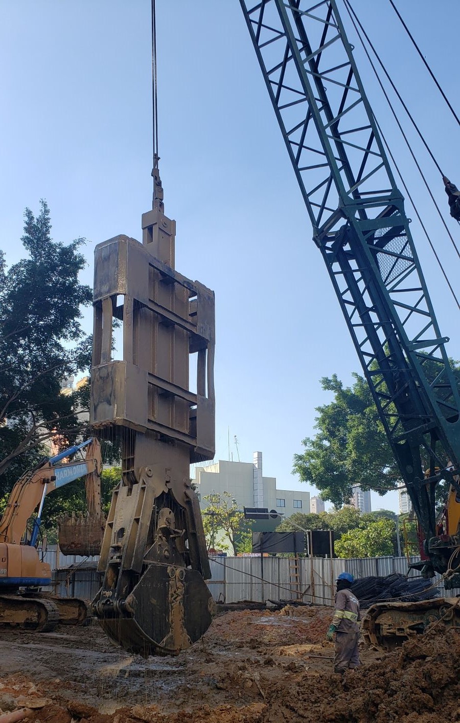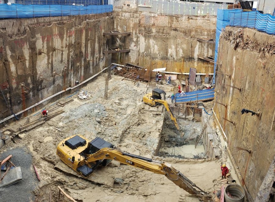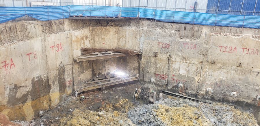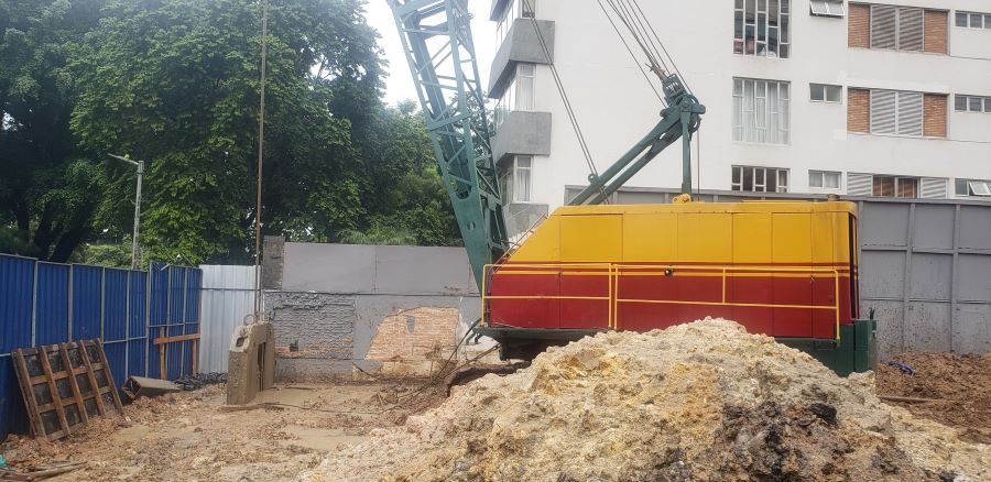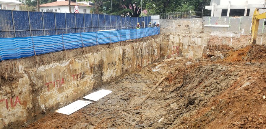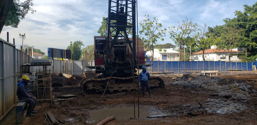 | - Foto em 07/06/2023 - Escavação das estacas barrete de fundação - arrasadas no 3o.SS, e argamassadas na sequencia. | |