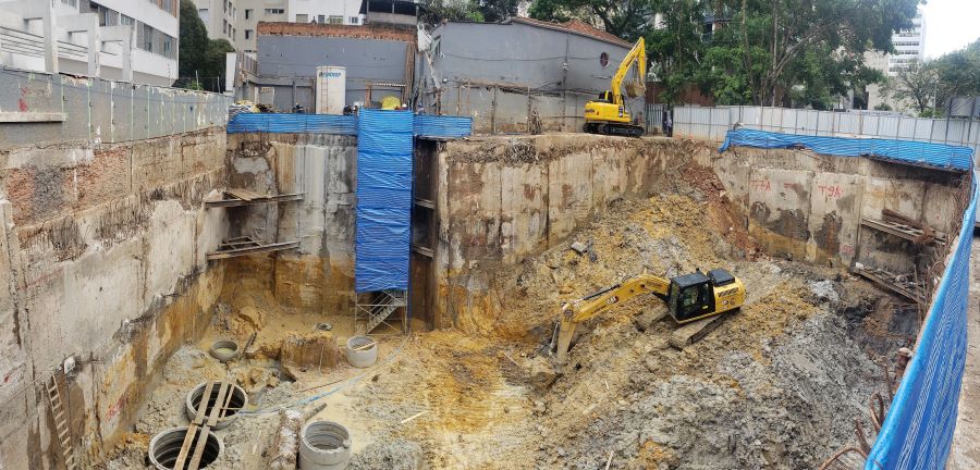 | - Foto em 10/08/2023 - Escavação geral até a cota do 2o.SS. | |
