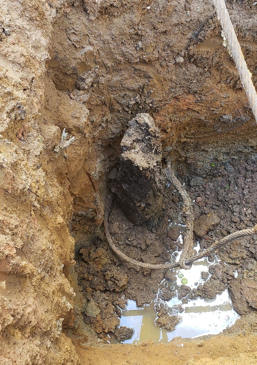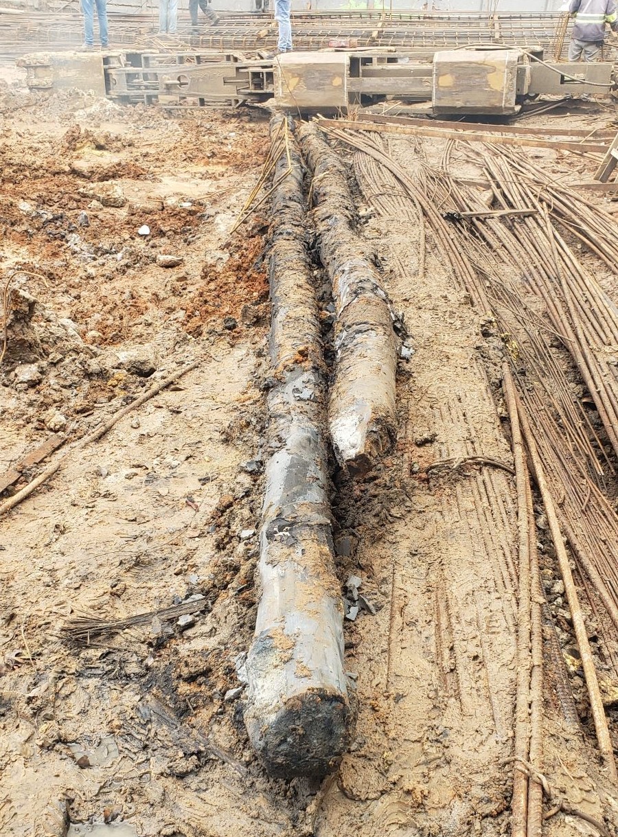 Foto em 30/05/2023 - Exemplo dos vários casos de estacas de madeira que foram encontrados interferindo com as paredes diafragma. |