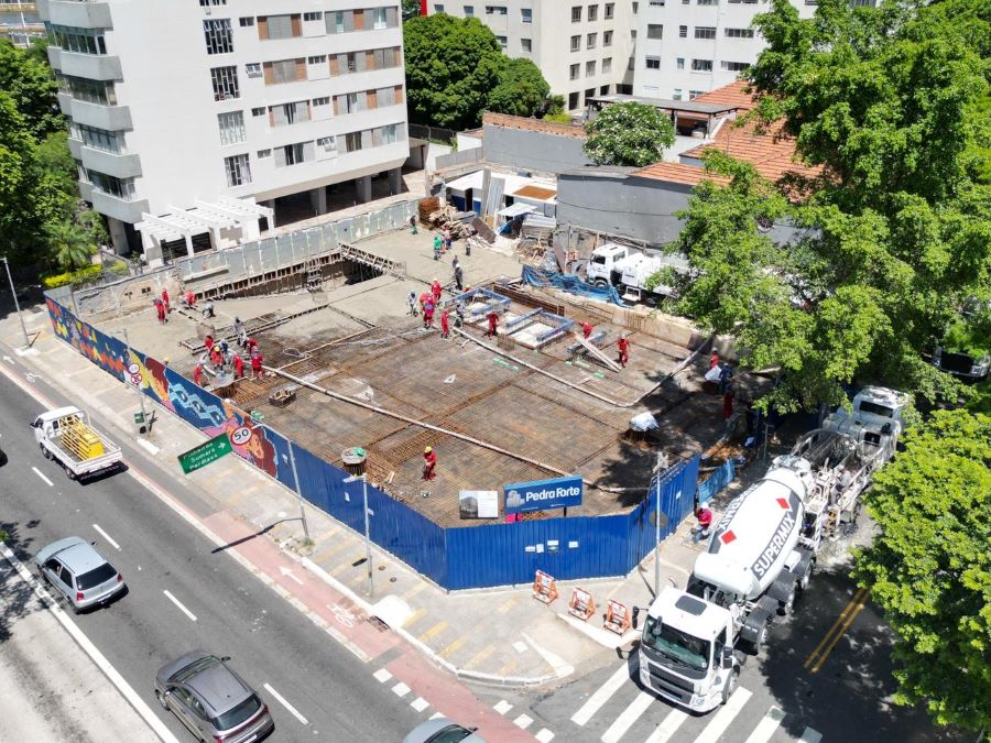 | - Foto em 25/05/2023 - Vista geral do canteiro de obras, com a Rua Lisboa x Av.Rebouças ao fundo. | |