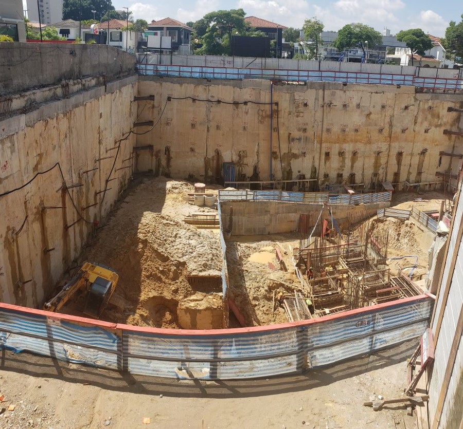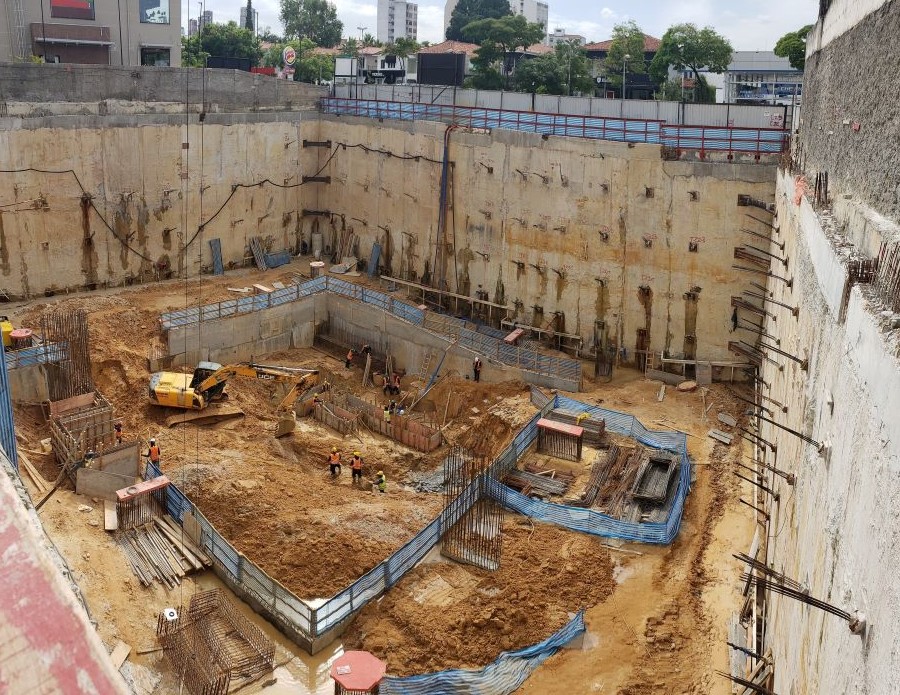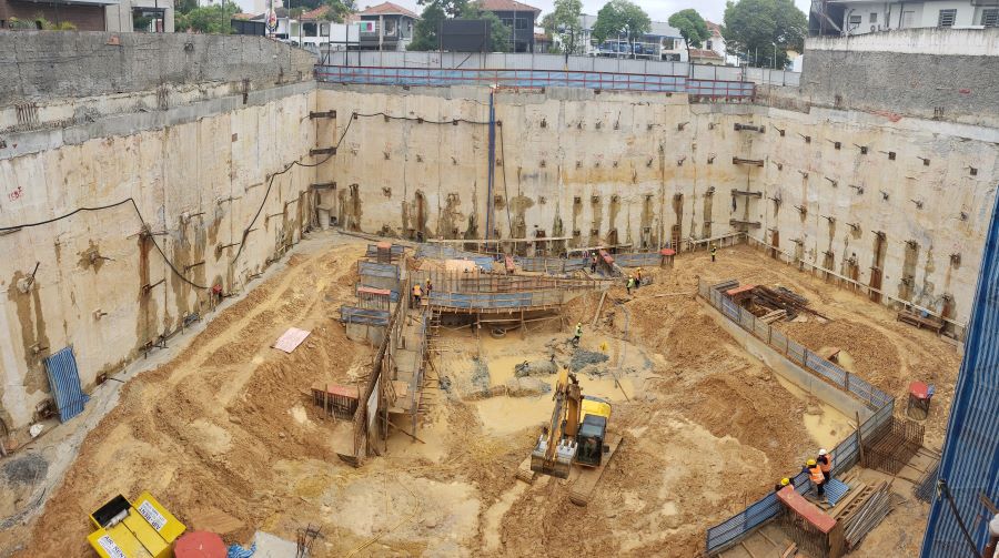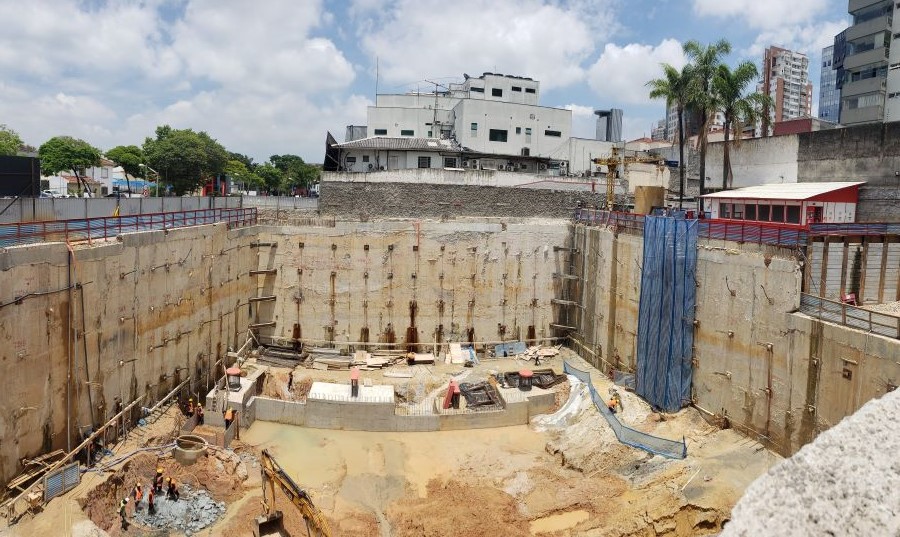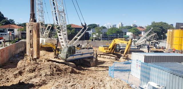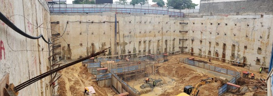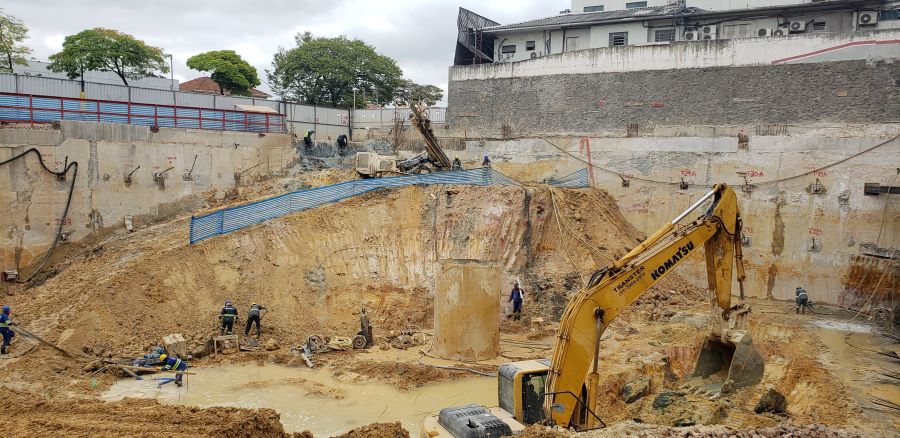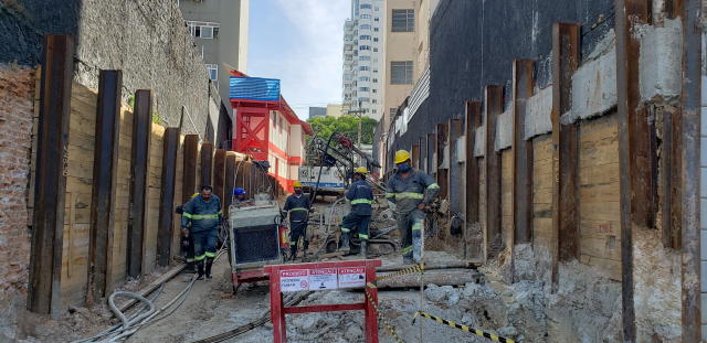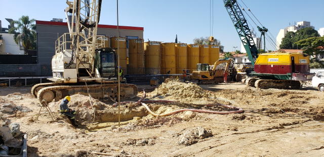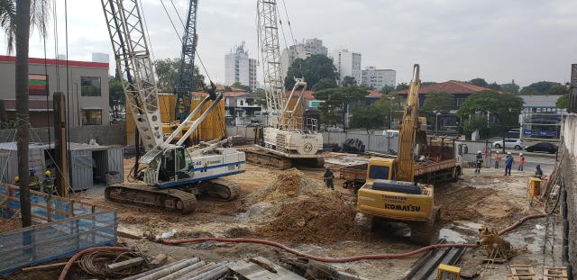 | - Foto em 23/03/2020 - Execução da parede diafragma em andamento - trecho Rebouças. | |