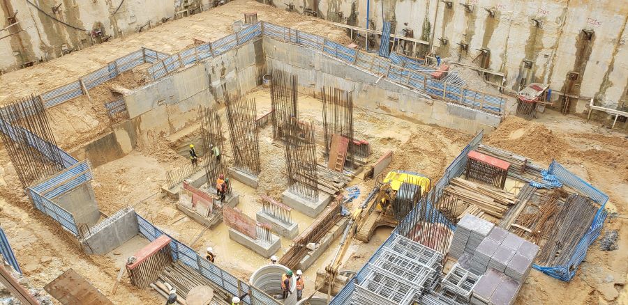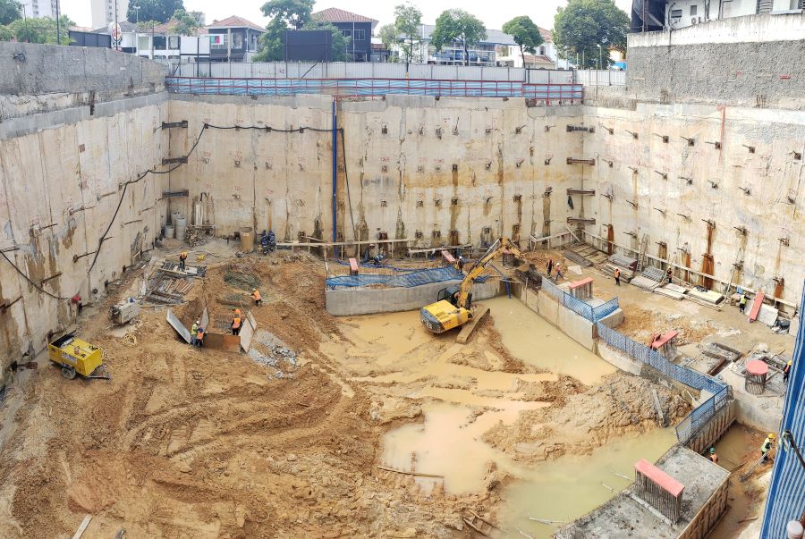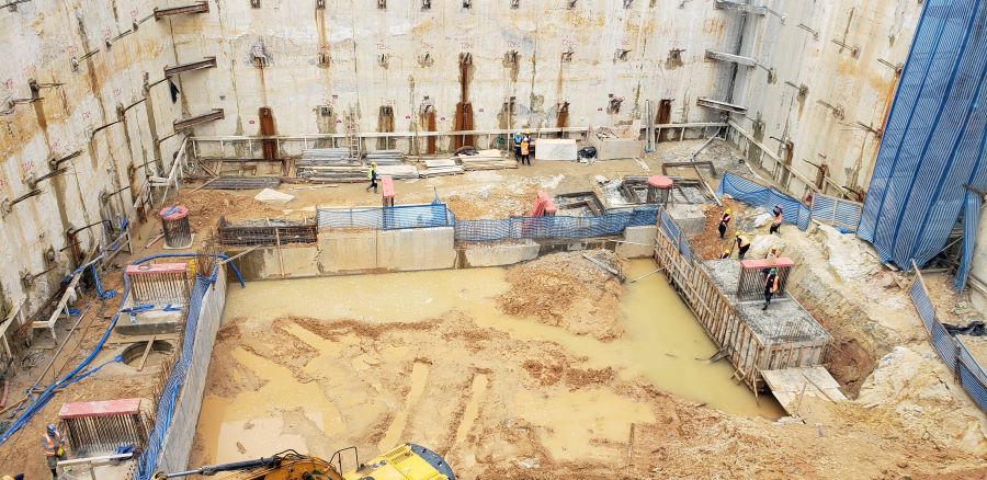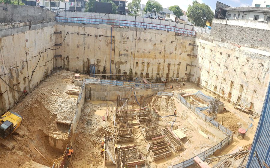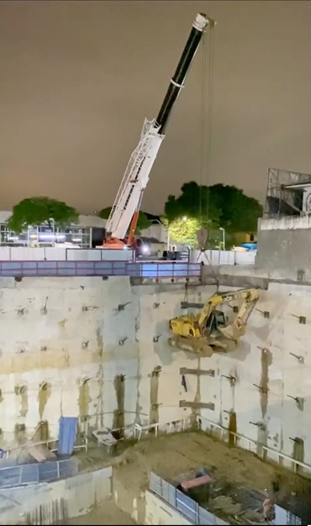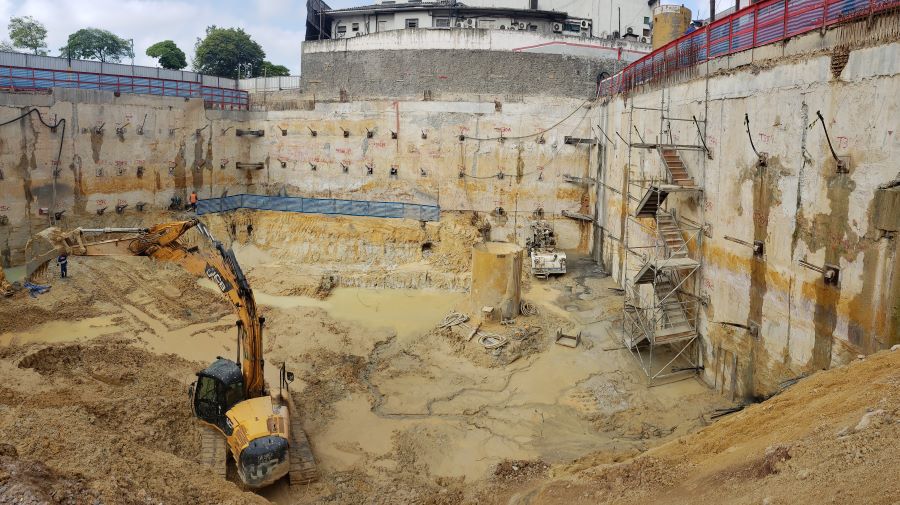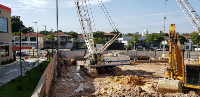 | - Foto em 23/03/2020 - Execução da parede diafragma em andamento - trecho Rebouças. | |