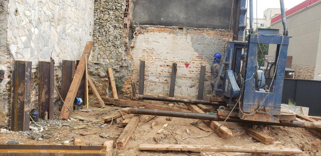 | - Foto em 04/08/2020 - Execução da 2a. linha de tirantes junto ao vizinho esquerdo. | |