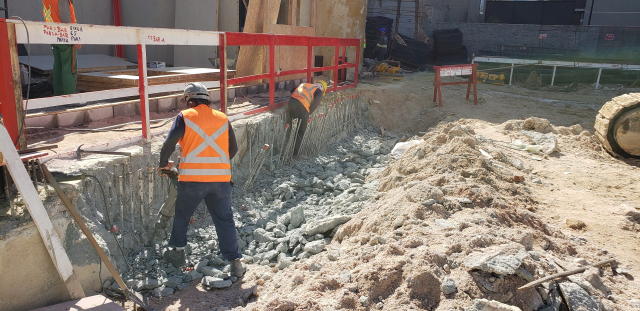 | - Foto em 09/09/2020 - Escavação para a 4a.linha de tirantes do 4o.SS inferior. | |