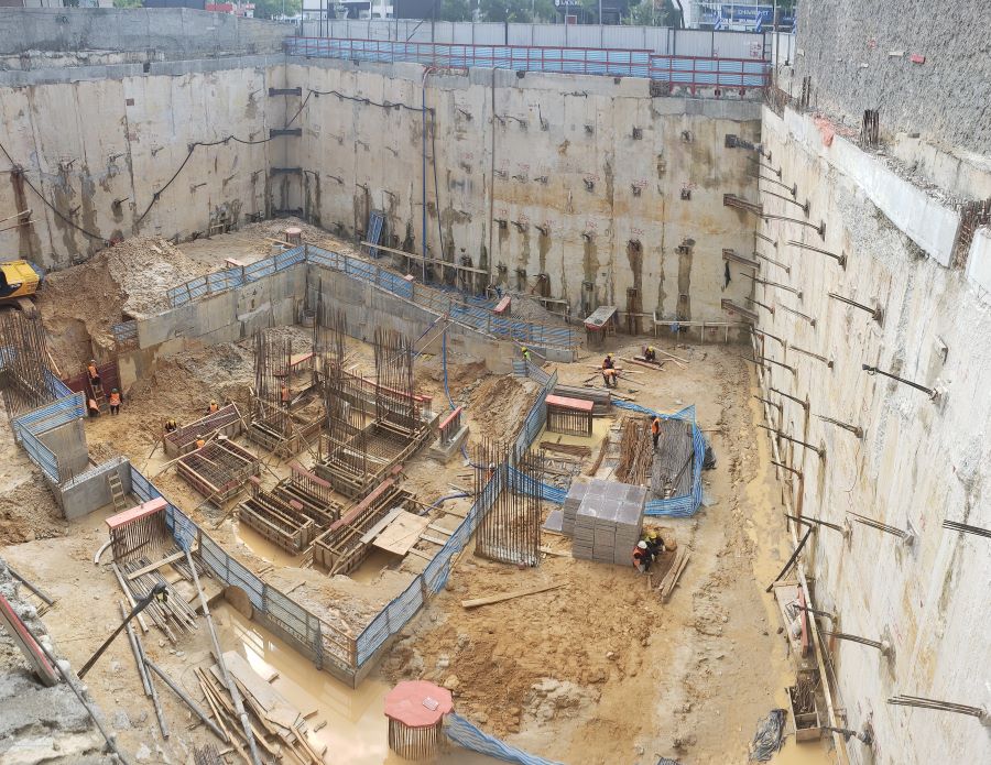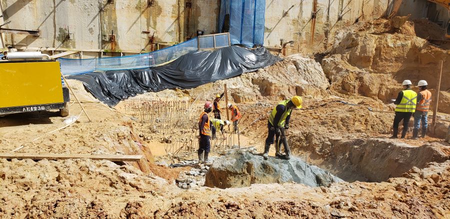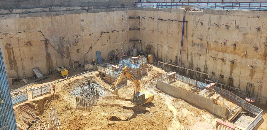 | - Foto em 24/09/2020 - Seguindo com atirantamento da parede diafragma e escavação geral. | |