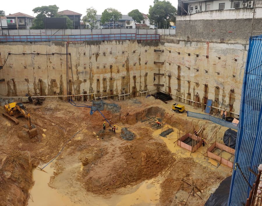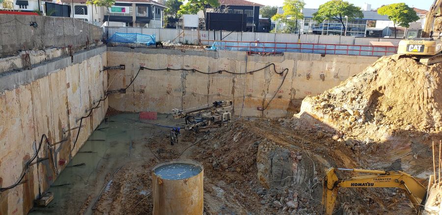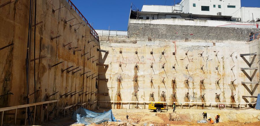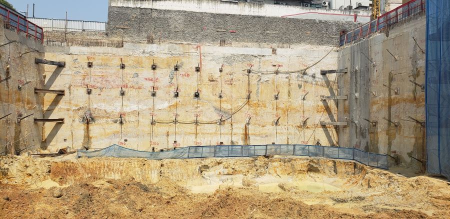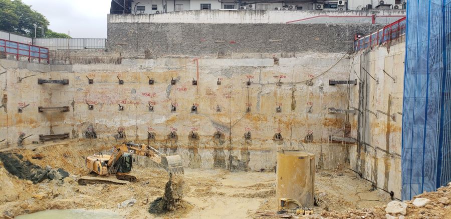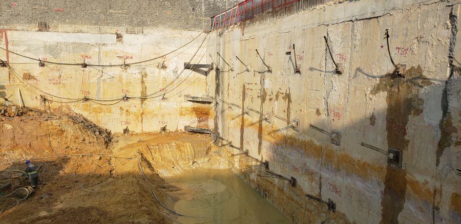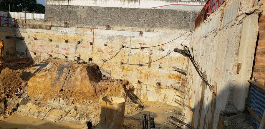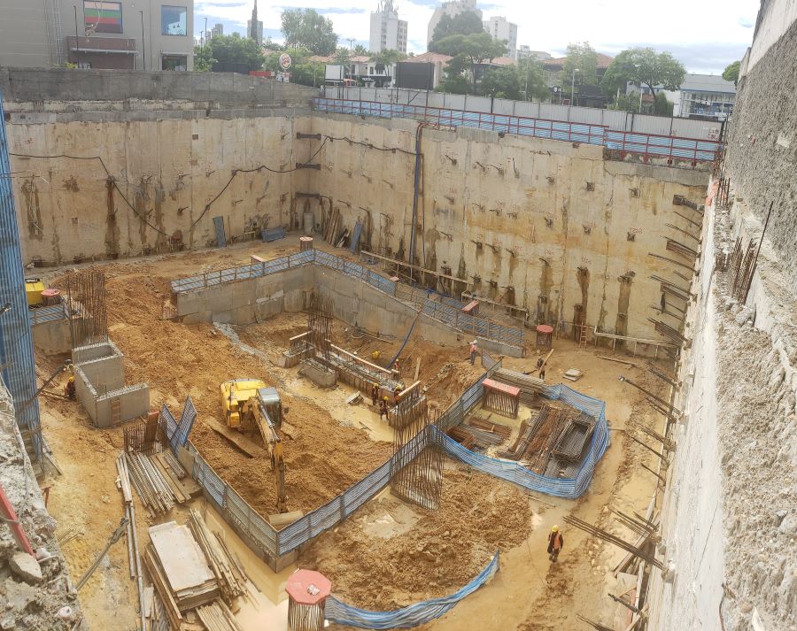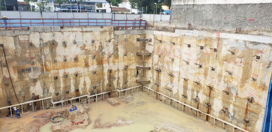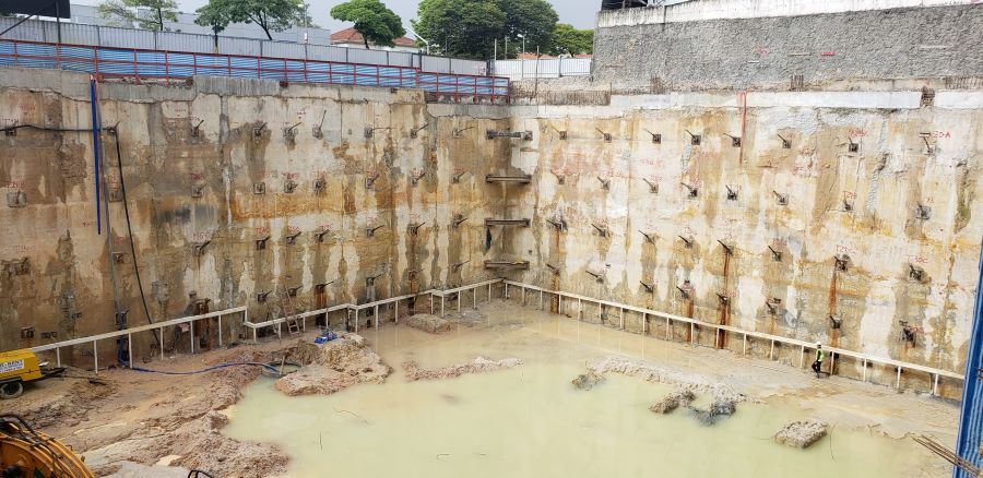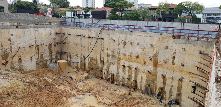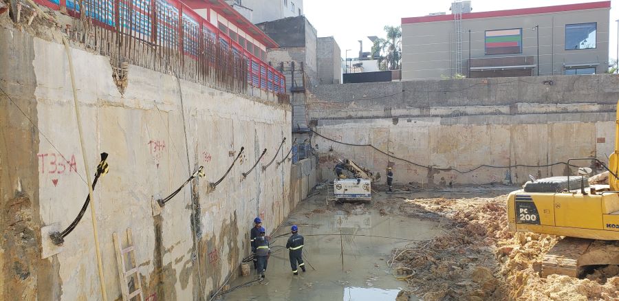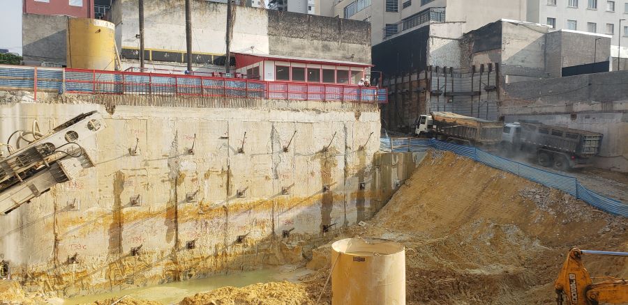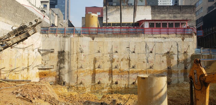 Foto em 19/10/2020 - Seguindo com atirantamento da parede diafragma