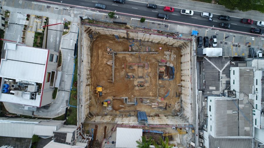 | - Foto em 07/10/2020 - Seguindo com atirantamento da parede diafragma e escavação geral. | |