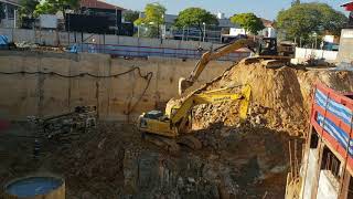 | - Foto em 25/08/2020 - Escavação com duas PC's para a 3a.linha de tirantes. | |
