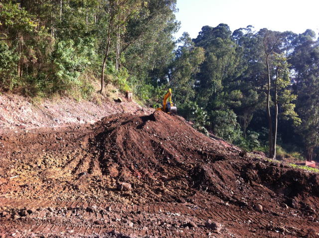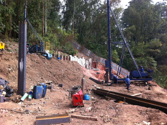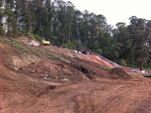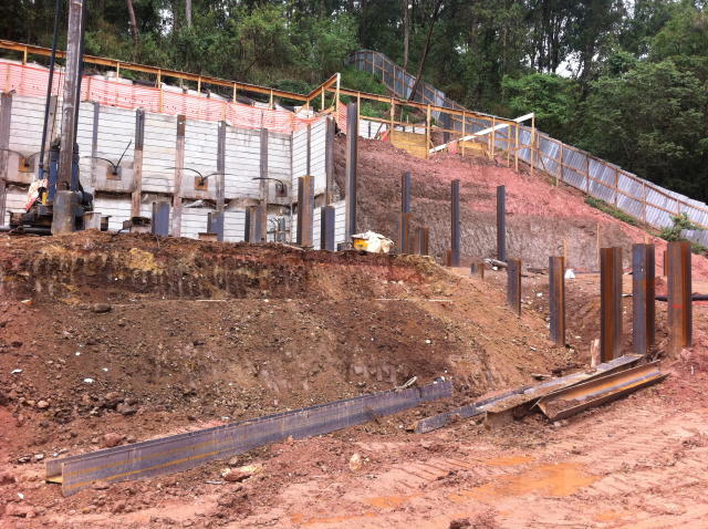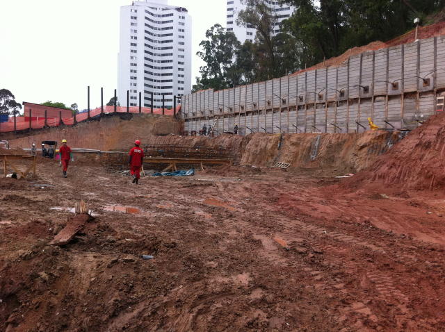 | - Foto em 14/10/11 - Escavação e atirantamento das cortinas. | |