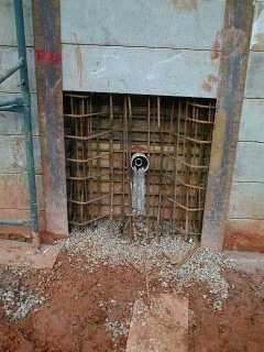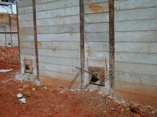 | - Foto em 22/09/05 - Armação e protensão dos nichos. | |