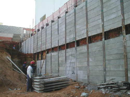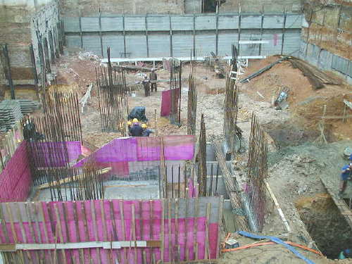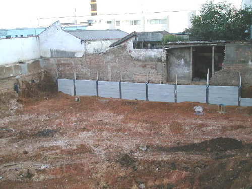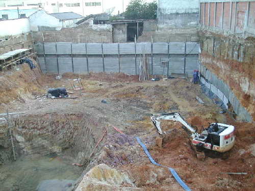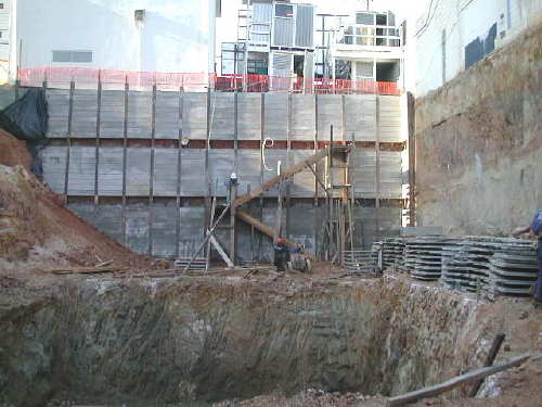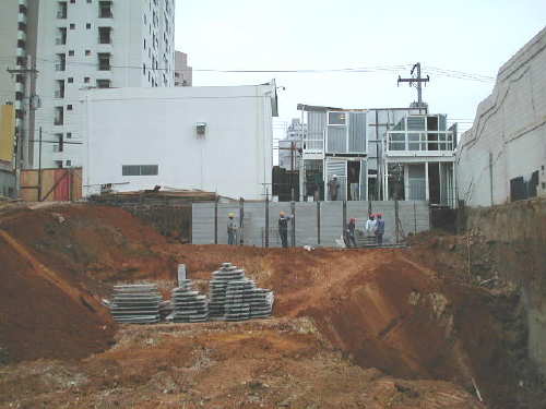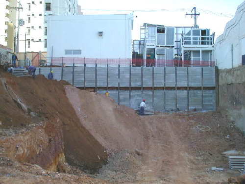 Foto em 02/07/03 - Concluída cortina dos fundos até o 3o.SS. |