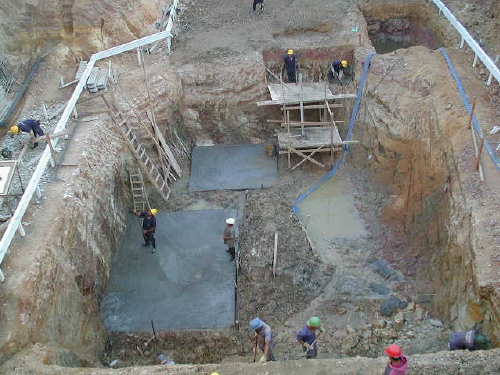 Foto em 25/07/03 - Preparando sapatas do elevador. |