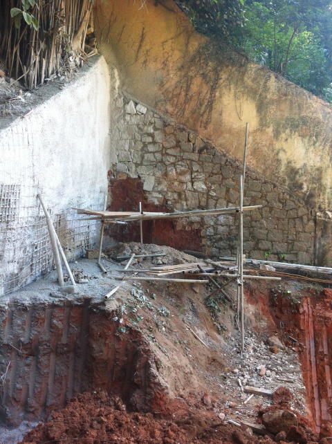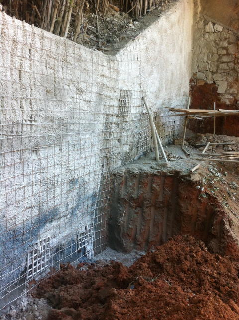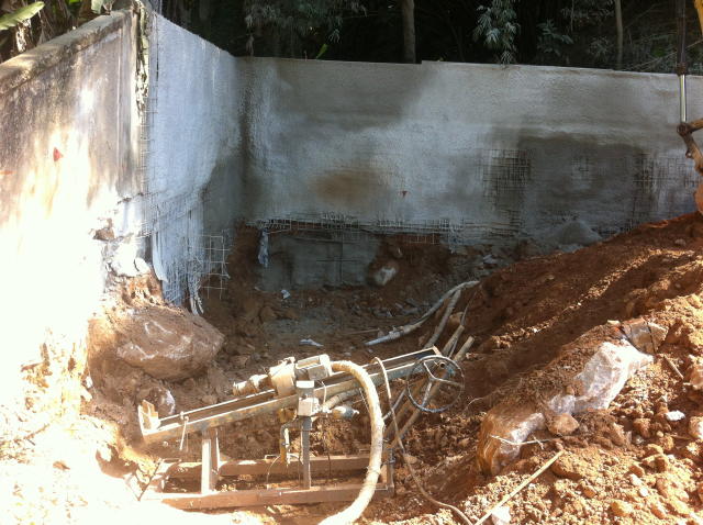 | - Foto em 30/04/2013 - Preparando a cortina em solo grampeado nos fundos. | |