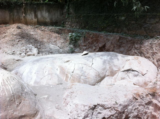 | - Foto em 09/01/2013 - Demolição das rochas com massa expansiva. | |