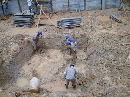 | - Foto em 19/10/04 - Iniciando fundação em sapatas. | |