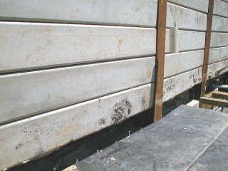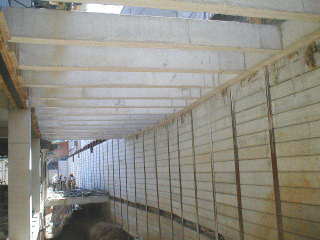 | - Foto em 10/03/05 - Travamento da cortina com a laje do 1o.SS. | |