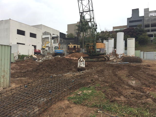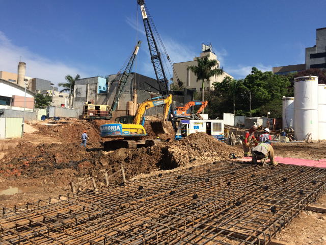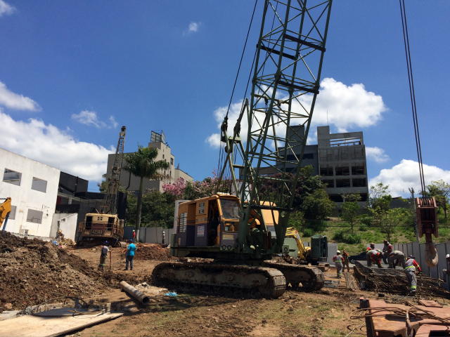 | - Foto em 15/12/17 - Inicio das fundações em estacas Barrete pinadas. | |