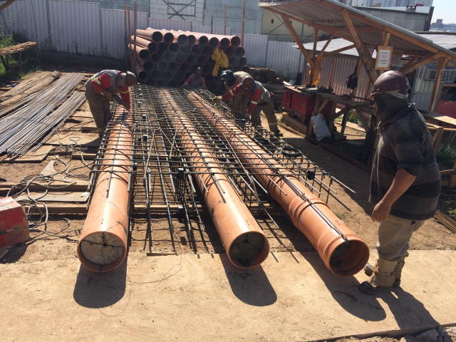 | - Foto em 18/05/2018 - Preparação de blocos e execução das estacas raiz. | |