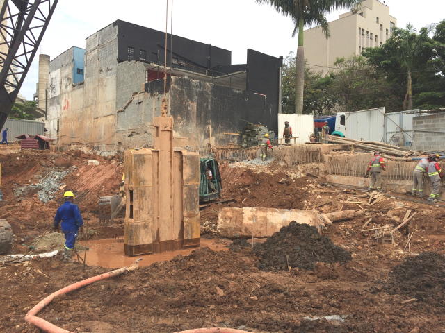 | - Foto em 24/10/2017 - Escavação da parede diafragma. | |