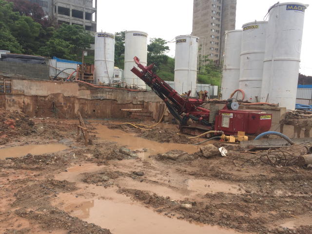 | - Foto em 24/01/2018 - Inicio da perfuração de tirantes. | |