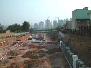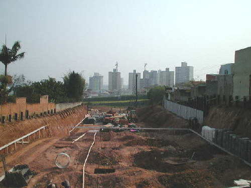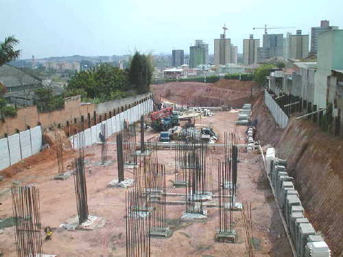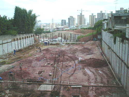 | - Foto em 15/09/04 - Concluidos os bolcos sobre tubulões, e executando cortinas laterais (3o.SS). | |