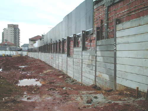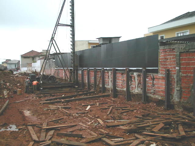 | - Foto em 06/02/04 - Cravando perfis na periferia. | |