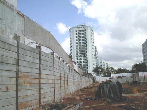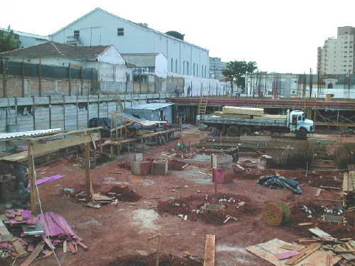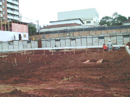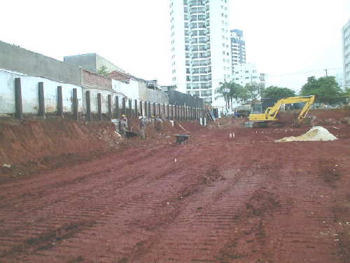 | - Foto em 20/02/04 - Escavando até o 1o.SS, e executando as cortinas simultaneamente. | |