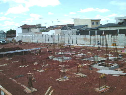 | - Foto em 15/03/04 - Inciando fundações em tubulões. | |