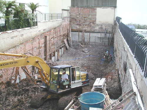 | - Foto em 19/05/03 - Tubulões concretados. Iniciando escavação para o 2o.Sub-Solo. | |