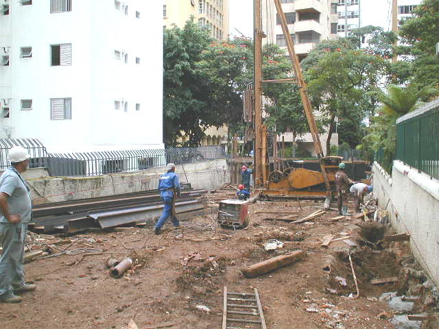 | - Foto em 20/03/03 - Cravação de perfis metálicos na periferia. | |